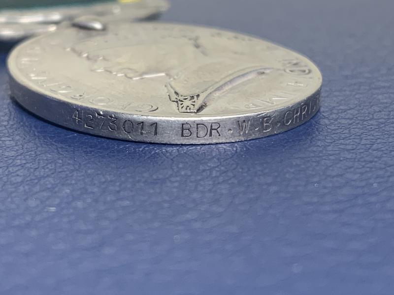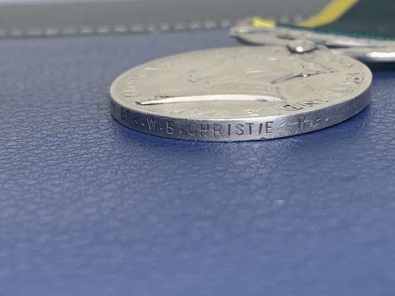 Efficiency Medal with Territorial scroll to BDR. W.B. Christie from the 5th Battalion, 53rd (Royal Northumberland Fusiliers) Searchlight Regiment, Royal Artillery - George VI